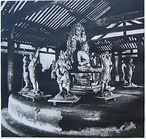Au cours d'une inspection en 1975, huit rouleaux du sūtra du Lotus du début de l'époque de Heian ont été découverts à l'intérieur du corps de la sculpture. Ils ont été classés trésor national du Japon[2],[3],[6].