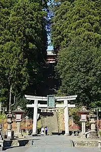 - (en) Cet article est partiellement ou en totalité issu de l’article de Wikipédia en anglais intitulé « Shiogama Jinja » (voir la liste des auteurs).
