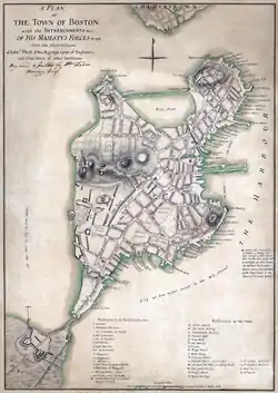 Immédiatement après les batailles du , la milice du Massachusetts, sous le commandement de William Heath, qui fut remplacé tardivement le 20 par le général Artemas Ward, forma un siège constituant une ligne allant de Chelsea, une ville située autour des péninsules de Boston et de Charlestown, à Roxbury, entourant ainsi de manière efficace trois côtés de la ville de Boston. Les miliciens bloquèrent notamment l'isthme de Charlestown (la seule voie terrestre permettant de se rendre à Charlestown), et l'isthme de Boston (la seule voie terrestre donnant accès à la ville de Boston qui était alors une péninsule), ne laissant que le port et l'accès à la mer sous le contrôle des forces britanniques.