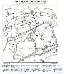 En 1417, la ville de Caen compte près de 40 000 habitants[1]. D'un point de vue militaire, la ville est un carrefour important défendu grâce à son château. Les fortifications de la ville ont été renforcées après le siège puis le pillage de la ville à la suite du siège de 1346 avec l'édification d'une enceinte fortifiée[1]. La ville compte aussi sur ses défenses naturelles : l'Orne et l'Odon. Mais ce système de défense présentait une faille : l'île des près[N 1] n'était pas fortifiée et exposait le châtelet saint-Pierre, pièce maîtresse du système défensif de la ville, au feu ennemi.