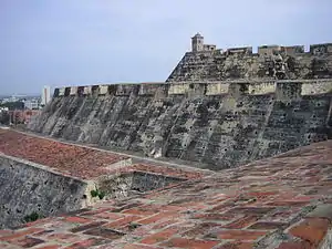 Pendant ce temps, venant de la terre, les assaillants ont établi une batterie qui, avec l'assistance des navires, parvient à percer l'enceinte principale. Les soldats s'engouffrent dans la brèche, mais les Espagnols ont déjà quitté les fortifications.[Où ?] Les Britanniques tentent ensuite d'isoler Carthagène de la terre en attaquant le Fort Saint-Lazare, mais l'assaut échoue, faisant 600 morts dans les rangs britanniques.