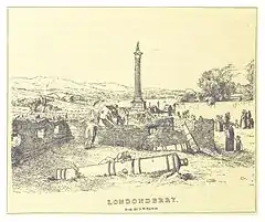 Une colonne de 98 pieds de haut, soit environ 29 mètres, est érigée en à l'initiative du maire de Londonderry d'alors. La colonne est coiffée d'une statue représentant George Walker. Lors de son érection le monument est financé par les Apprentices Boys, qui règlent la moitié des coûts, ainsi que par The Honourable The Irish Society et la corporation de Londonderry qui participent en cédant chacune d'elles 50 guinées. La nuit du , l'IRA Provisoire fait exploser le monument[23].