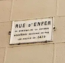 Autre souvenir du siège de 1479 est la rue d’Enfer (proche de la cave, en montant vers la Collégiale et la Place Nationale). Dans cette ruelle étroite et en pente, les bourgeois de Dole se sont retranchés et ont massacré les envahisseurs français pendant un temps avant de céder finalement devant le nombre. Une plaque de rue commémore aujourd'hui cet événement.