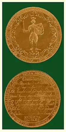 et sur la tranche : MONUMENTUM REDUCT: CIVIT: GRONING: CELEBRAT: A: IUBEL: 1694. 13 MENS: IUL: