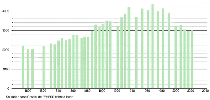 3 022 hab. (2021 en augmentation de 1,48 % par rapport à 2015)