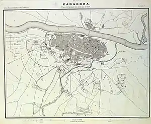 Le 11 juillet, les Français passent l'Èbre, grâce aux travaux exécutés par Dedon. La ville peut être investie à la fin de juillet. Cependant les effectifs français sont trop faibles pour un encerclement complet et la ville peut accueillir quelques renforts[2]. Dedon établit alors sept batteries contre le couvent de Santa Engracia menaçant le front entre ce couvent et la porte du Carmen, et en flanc le couvent des capucins Trinitaires.