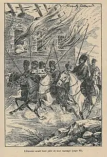 « L'ennemi avait tout pillé et tout saccagé », gravure de l'ouvrage Les Cosaques en Champagne et en Brie : Récits de l'invasion de 1814 par Louis Rogeron et Robert Allouard, 1905.