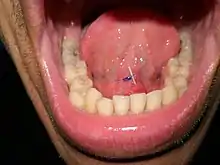 Issue spontanée de calculs salivaires dans la bouche. Ces lithiases sont symptomatiques seulement chez 7,3 personnes pour 100000/an[11] alors que la proportion de patients asymptomatiques ayant une lithiase salivaire peut atteindre jusqu’à 1,2% de la population générale[12]. L’âge moyen de découverte de ces lithiases est compris entre 40 et 50 ans. Elles sont beaucoup plus rares, bien que possibles, chez l’enfant.