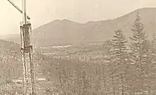 Les restes au loin du village depuis le réservoir de la Kolyma. | |||