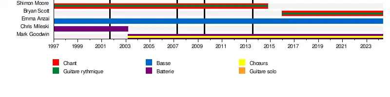 Le , Shimon Moore quitte le groupe, et les deux membres restants continuent sans lui. La bassiste Emma Anzai restera seul membre original du groupe. Moore a, en fait, été renvoyé du groupe après avoir essayé de séparer le groupe par le biais d'un avocat[4],[5].