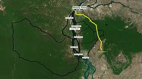 Le district est traversé par une seule route nationale à l’extrême est du district, qui relie directement le chef-lieu de la province entière, Stoeng Treng, 15 km plus au nord. L’activité humaine est donc plus concentrée à l’est du district.