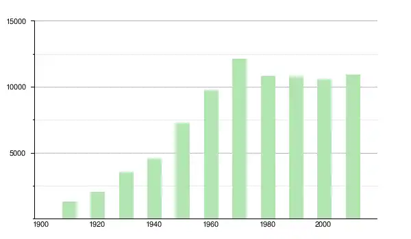 | 1980 | 10 837 | ▼ −10,73 % | |
