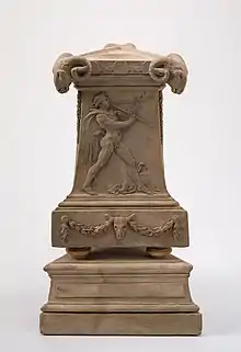 - Vase orné d’un petit satyre et d’une jeune femme se pressant la poitrine, 1799, terre cuite, H. 45 cm, Hartford, Wadsworth Atheneum Museum of Art[6].