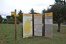 - Panneau de signalisation : poteau en bois sur lequel sont fixés un ou plusieurs panneaux directionnels. Ils peuvent être numérotés, ce qui permet de les repérer facilement sur la carte IGN. Dans certains départements, ces panneaux de signalisation sont appelés « balises ».