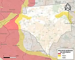Le retrait-gonflement des sols argileux est susceptible d'engendrer des dommages importants aux bâtiments en cas d’alternance de périodes de sécheresse et de pluie. 14,8 % de la superficie communale est en aléa moyen ou fort (67,4 % au niveau départemental et 48,5 % au niveau national). Sur les 512 bâtiments dénombrés sur la commune en 2019, 9 sont en aléa moyen ou fort, soit 2 %, à comparer aux 81 % au niveau départemental et 54 % au niveau national. Une cartographie de l'exposition du territoire national au retrait gonflement des sols argileux est disponible sur le site du BRGM[20],[Carte 3].