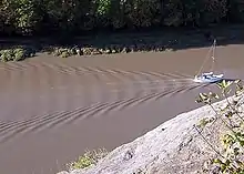 Sillage généré par une bouée immobile mais dans un fort courant.