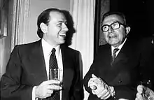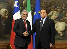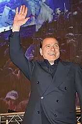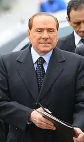 Silvio Berlusconi (/ˈsilvjo berluˈskoːni/[2] ), surnommé il Cavaliere (« le Chevalier »)[alpha 1], né le à Milan et mort le dans la même ville, est un homme d'affaires et homme d'État italien, président du Conseil des ministres de 1994 à 1995, de 2001 à 2006 et de 2008 à 2011.