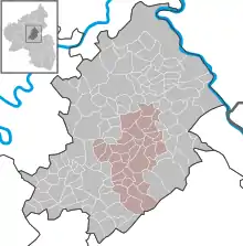Localisation du Verbandsgemeinde de Simmern dans l'arrondissement de Rhin-Hunsrück