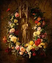 - Guirlande de fleurs suspendue autour d'une niche gothique de la Sainte-Vierge, Salon de 1843, localisation inconnue.