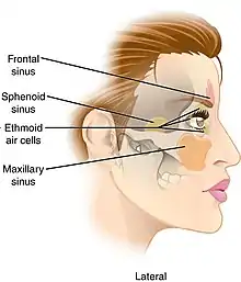 Le sinus sphénoïdal ou le sinus sphénoïde est l'un des quatre sinus paranasaux appariés, il est contenu dans le corps du sphénoïde. Les sinus sphénoïdes varient en taille et en forme, et en raison du déplacement latéral du septum des sinus sphénoïdaux (la cloison séparant les deux sinus droit et gauche), ils sont rarement symétriques. Ils ne peuvent pas être palpés lors d'un examen extra-oral[1].