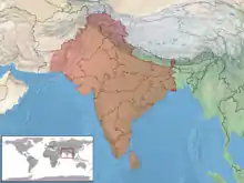 Cette espèce se rencontre au Népal, en Inde et au Sri Lanka[2]. Sa présence est incertaine au Pakistan.