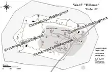 Le site Hillman était le poste de commandement des défenses côtières commandé par le Colonel Krug et le Major Hoff, respectivement pour l’infanterie et l’artillerie. Sur ce lieu, une soixantaine d’hommes du 736e Régiment de grenadiers vivaient et travaillaient dans des blockhaus enterrés et couverts de 2 mètres de béton. Certains de ces blockhaus étaient munis de coupoles blindées de 20 à 30 cm d’épaisseur servant à l’observation et de tobrouks équipés de mitrailleuses pour la défense du site. Ces blockhaus étaient également munis d’un système de ventilation mécanique ainsi que de systèmes de chauffage. À l’extérieur, un réseau complexe de tranchées reliait les différentes positions souterraines qui contenaient les salles de contrôle du quartier général, les salles des transmissions, les salles radios, la salle des repas et les quartiers de repos. Tous les points fortifiés étaient reliés entre eux par des lignes téléphoniques enterrées à deux ou trois mètres de profondeur.