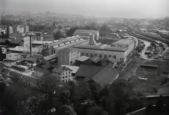 Des vues aériennes de Walter Mittelholzer montrent le site en 1925. Sur la vue prise du nord, l'avenue de France et son pont n’existent pas encore. Au premier plan un bâtiment porte en grandes lettres le nom de la Compagnie des mines d'anthracite de La Mure (créée en 1856) ; les Ateliers de Sécheron ont travaillé pour la ligne de chemin de fer de Saint-Georges-de-Commiers à La Mure en Isère.