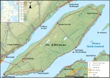 L’île d'Orléans est une île du fleuve Saint-Laurent située à environ 5 km en aval du centre-ville de la ville de Québec[1]. L'île a été l'un des premiers endroits à être colonisé en Nouvelle-France, et un grand pourcentage des Québécois, Métis, Franco-Canadiens et Franco-Américains peuvent retracer leur ascendance aux premiers habitants de l'île. Elle a été décrite comme le « microcosme du Québec traditionnel et le lieu de naissance des francophones en Amérique du Nord[2] » et compte environ 7 000 habitants, répartis sur 6 villages. L'Île d'Orléans est jumelée avec l'Île de Ré en France.