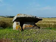 | Dolmen de Pissotte | Taizé-Maulais | autres noms dolmen de la Pissase, dolmen de la Vallée du Peu, dolmen de Tartahuiche[63] | 46° 55′ 29″ N, 0° 08′ 11″ O | ![]() | |
