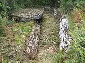 - des dalles de forme rectangulaire du même type que celles employées comme orthostates dans les dolmens;