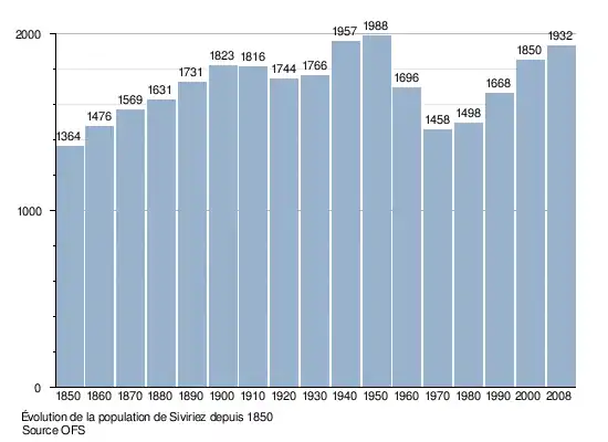 Le graphique suivant résume l'évolution de la population de Siviriez entre 1850 et 2008[5] :