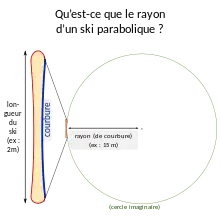 À l'origine plus grand que le skieur, le ski peut maintenant être plus petit que lui grâce aux avancées technologiques, et notamment à la forme parabolique[3]. Cette forme parabolique est apparue en 1993[4].