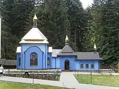 Il y a trois églises dans le sanctuaire : l'église de l'Exaltation de la vrai-croix, l'église st-Michel et l'église des saints Boris et Gleb.