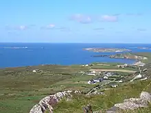 - La Sky Road proprement dite est au sommet des montagnes ; de là-haut, on a une très belle vue sur l'océan, Inishbofin et les autres îles alentour. Cette route mène aussi au Château de Clifden.