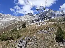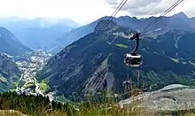 ![]() Vue d'une cabine avec le mont Blanc en arrière-plan. |