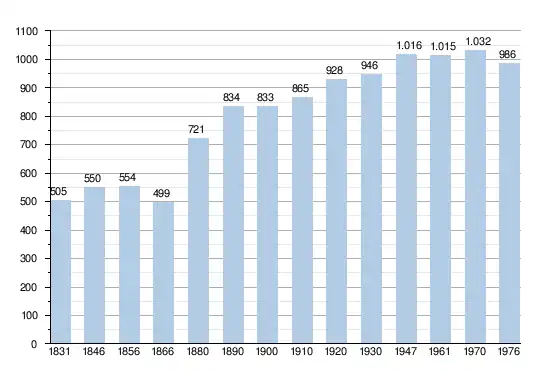 - Sources : INS, Rem. : 1831 jusqu'en 1970 = recensements, 1976 = nombre d'habitants au 31 décembre[2].