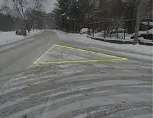 Lorsqu’une voie de circulation est enneigée, les traces laissées par les voitures sur la neige révèlent par contraste les espaces qui pourraient être rendus aux piétons[4],[5],[6].