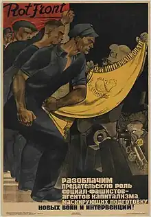 Le social-fascisme était une théorie élaborée au sein de l'Internationale communiste (Komintern) et des partis affiliés à la fin des années 1920 et au début des années 1930. Elle énonçait l'idée que la social-démocratie était devenue une variante du fascisme, en ce sens qu'elle faisait obstacle à la dictature du prolétariat par la répression, ainsi qu'à un modèle économique de propriété collective en défendant la propriété privée[1]. À cette époque, les dirigeants du Komintern, tels que Joseph Staline et Rajani Palme Dutt, argumentaient que la société capitaliste était entrée dans une troisième période où la révolution prolétarienne était imminente, mais que les sociaux-démocrates et d'autres forces « fascistes » pouvaient en empêcher l'avènement[1],[2].