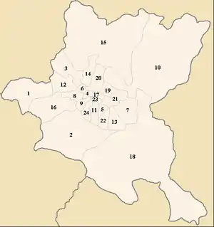 La ville de Sofia (Sofia-Grad), c.-à-d. Sofia - région capitale, est l'une des 28 régions (en bulgare област 'région', Pl. области) de Bulgarie. L'agglomération de Sofia inclut 3 villes satellites et 34 villages. Elle est composée de 24 districts (arrondissements) :
