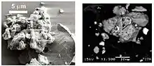 L'érosion spatiale produit des nanoparticules de fer (Fe0)[8],[9] et de l'hélium 3 est également présent dans le régolithe lunaire en plus grande concentration que sur Terre[10].