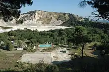 Au centre se trouvent des marmites de boues sulfureuses bouillonnantes, la fangia, utilisée dès l'Antiquité à buts thérapeutiques, et exploitée encore aujourd’hui comme produit de beauté d’origine hydrothermale.