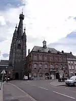 Il a été construit en 1574 et ne comportait, à l'origine, qu'un seul étage. Il possédait aussi un escalier extérieur et un gracieux beffroi en saillie, à six pans. En 1865, l'édifice fut profondément remanié, gagnant un second étage, mais perdant son escalier extérieur et son beffroi, qui lui donnaient un caractère Renaissance. Les portes sont en plein cintre, de même que les fenêtres. Ce type d'architecture est très rare dans l'art régional qui utilise le plus souvent la baie carrée à meneau cruciforme, l'arc en anse de panier ou l'arc en segments. Le bâtiment comportait au rez-de-chaussée un marché couvert, maintenant occupé par les bureaux de la mairie. On peut encore distinguer sur les clefs de voûte des anciennes portes, des inscriptions en lettres gothiques recommandant la probité aux marchands de la halle, dont voici la transcription littérale (hors abréviations) :