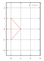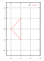 L'ensemble de A à gauche est un triangle dont les coordonnées des sommets sont (0,-1), (0,1) et (1,0). À droite est illustré un triangle semblable B, orienté différemment. Les coordonnées sont (0,0), (1,-1) et (1,1). Si les ensembles A et B sont deux triplets, on trouve :