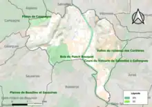 - le « vallon du ruisseau des Corbières » (72 ha), couvrant 4 communes du département[14] ;