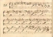 et notée Prestissimo − l'une des trois sonates dans ce cas. Elle est associée à la précédente sonate, la plus dense de toutes en forme de prélude qui introduit la puissance sonore de celle-ci[1]. La main droite commence seule, suivie de la gauche en imitation, sans la droite qui n'intervient qu'après la redite à l'octave inférieure.