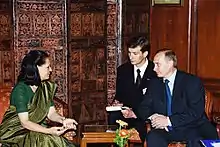 Son fils, Rahul, est élu au Parlement depuis 2004, dans la circonscription d'Amethi. Il a pris sa place à la tête du Parti du Congrès le .