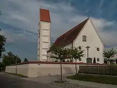 Église: die katholische Pfarrkirche Sankt Andreas und Wohnhaus