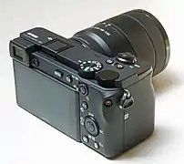 Le design est semblable à celui de l'A6500 mais la poignée est beaucoup plus volumineuse et redessinée, permettant d'accueillir une batterie plus grande, le flash disparaît tandis qu'un bouton personnalisable supplémentaire apparaît. L'écran est orientable à 180°ce qui permet une prise de vue selfie[2],[3].