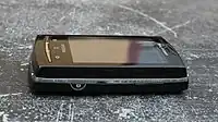 - Boutons : écran tactile, trois boutons en façade, trois boutons sur le côté droit (deux boutons de volume, un bouton à double pression pour l'appareil photo), un bouton de mise en marche/arrêt sur le côté supérieur