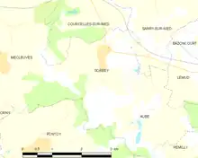 Sorbey est située au sud-est de Metz. Le village est sur la route de Metz (D 999) après Courcelles-sur-Nied. L’écart de Poncillon au sud du ban communal.